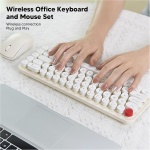 AHORRO DE ESPACIO: el combo de mouse y teclado inalámbrico para máquina de escribir está diseñado para PC e incluye un encantador teclado inalámbrico con teclas redondas de estilo retro y un mouse óptico inalámbrico. 68 teclas para ahorrar espacio y facilidad de uso.