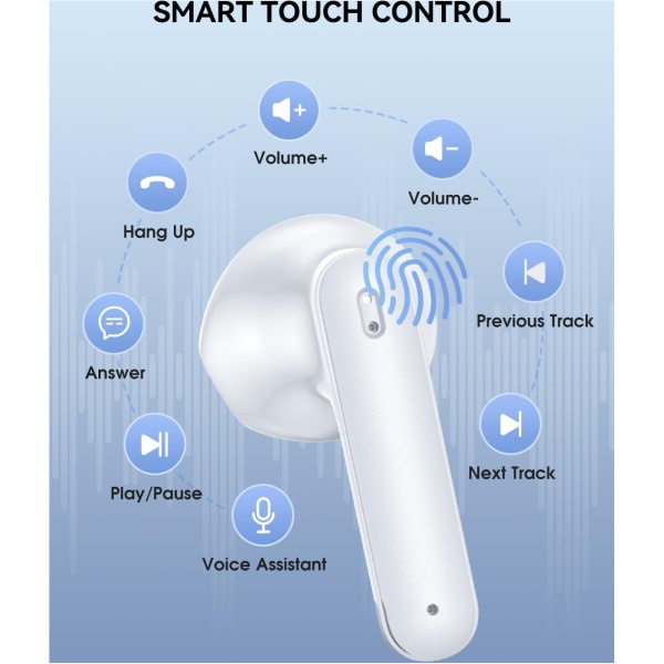 Control Táctil y Amplia Compatibilidad: Puedes controlar fácilmente la reproducción y la pausa / las pistas de música / el volumen / el asistente de voz y las llamadas tocando con el dedo los puntos táctiles de los cascos Inalámbricos. Cascos bluetooth no hay necesidad de preocuparse por problemas de compatibilidad.Incluyendo iOS/Android, tabletas y ordenadores portátiles.