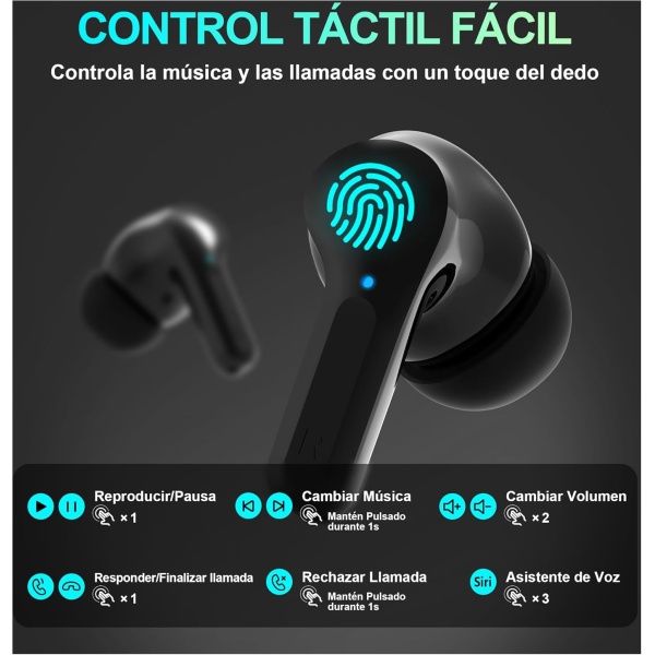 Control Táctil Sensible y Compatibilidad Universal: Toque los auriculares para llamar, pausar, cambiar canciones, ajustar volumen o activar Siri. Con amplia compatibilidad, se conectan fácilmente a cualquier dispositivo con Bluetooth, como teléfonos, tablets, PCs y TVs.