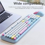 [Diseño lindo]: el juego de teclado y mouse inalámbricos presenta un teclado de tamaño completo con un adorable mouse con diseño en forma de gato con colores vibrantes, que agrega brillo a su dispositivo y escritorio de oficina, brinda un toque de diversión a su trabajo mundano y ayuda a aliviar la presión laboral. .