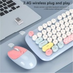 Combo de Teclado Inalámbrico y Ratón, Colorido Teclado de Máquina de Escribir de Tamaño Completo, Lindo Ratón de Gato, Diseño Ergonómico para Computadora de Escritorio y Portátil