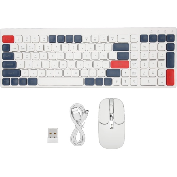 Goshyda Combo de Teclado Inalámbrico y Ratón, Teclas Redondas, Diseño Ergonómico, Modos de Conexión Duales, Adecuado para Teléfono, Tableta y Oficina (Blanco Azul)