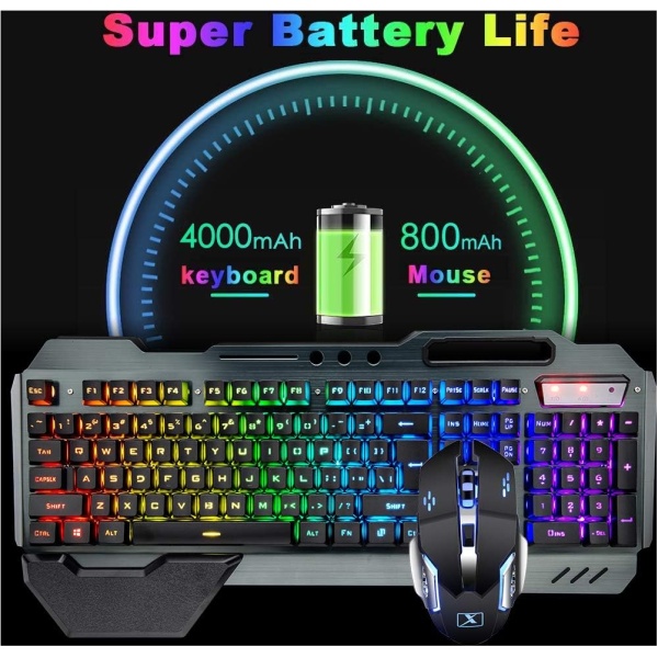 Juego de teclado y mouse 4 en 1: este combo de teclado y mouse inalámbricos mejorados con auriculares Bluetooth está hecho de material resistente y duradero de gran capacidad con batería integrada de gran capacidad (teclado: 4000 mAh, ratón: 800 mAh, auriculares: 1000 mAh), garantiza una larga duración de la batería, disminuye la frecuencia de carga, y el teclado está diseñado con función de ahorro de energía y se automáticamente ingrese sueño sin operación en 3 minutos, pulsa cualquier tecla para despertarlo.