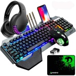 Hoopond Juego de Teclado inalámbrico para Juegos y ratón y Auriculares y Alfombrilla de ratón, 4 en 1,16 RGB retroiluminada Teclado Recargable, 7 Ratones retroiluminados y RGB Auriculares para Juegos