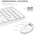iClever – Juego de teclado inalámbrico (teclado inalámbrico recargable, diseño alemán QWERTZ, 2,4 GHz, teclado inalámbrico para PC, ordenador portátil, Smart TV, color blanco y plateado)