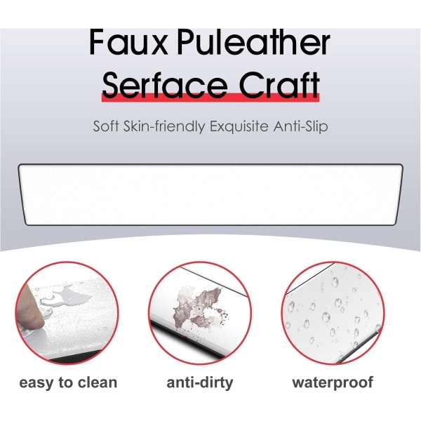 【Superficie de piel sintética de alta calidad】 La piel sintética se utiliza en la superficie, no hay olor tóxico ni químico. Es suave para la piel, sin las abrasiones y erupciones que pueden aparecer en las superficies de plástico y vinilo. Previene eficazmente daños accidentales causados por aceite, agua u otros accidentes, es fácil de limpiar, si está sucio, simplemente límpielo con un paño húmedo.