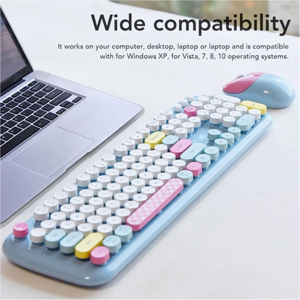 Lindo Ratón de Gato con Teclado Inalámbrico, Teclado de Máquina de Escribir de Tamaño Completo, Colorido, Diseño Ergonómico, Ahorro de Energía Automático, 2,4G Plug and Play,