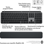 MX Keys S Combo for Mac está optimizado para macOS y iPadOS (6), ofrece una distribución de teclas específica para Mac y está disponible en acabados gris espacial a juego que combinan con tu equipo Apple.