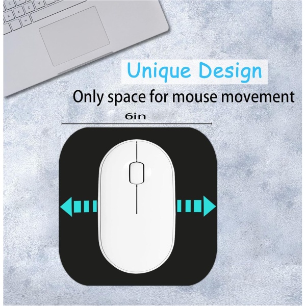 Diseño compacto: mide solo 6 x 6 pulgadas, esta mini alfombrilla de mouse se adapta perfectamente a cualquier superficie pequeña como bandejas de teclado de laptop, escritorios, mesas para un mouse inalámbrico.