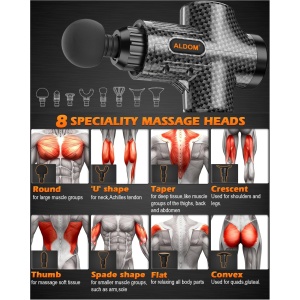 La pistola de masaje muscular ALDOM es la herramienta perfecta para deportistas, fisioterapeutas y cualquier persona que busque aliviar tensiones musculares, contracturas o mejorar la circulación. Gracias a su motor de alta potencia y tecnología de percusión profunda, penetra eficazmente en el tejido muscular aliviando la rigidez y acelerando la recuperación post-entrenamiento.