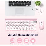 Potente configuración funcional: El teclado inalámbrico conserva el teclado numérico y las teclas del teclado de tamaño completo de 102 teclas, y el diseño estándar Español QWERTY le permite acceder rápidamente a música/control de volumen/mensajes, etc., lo cual es conveniente y rápido, y simplifica la vida en la oficina.