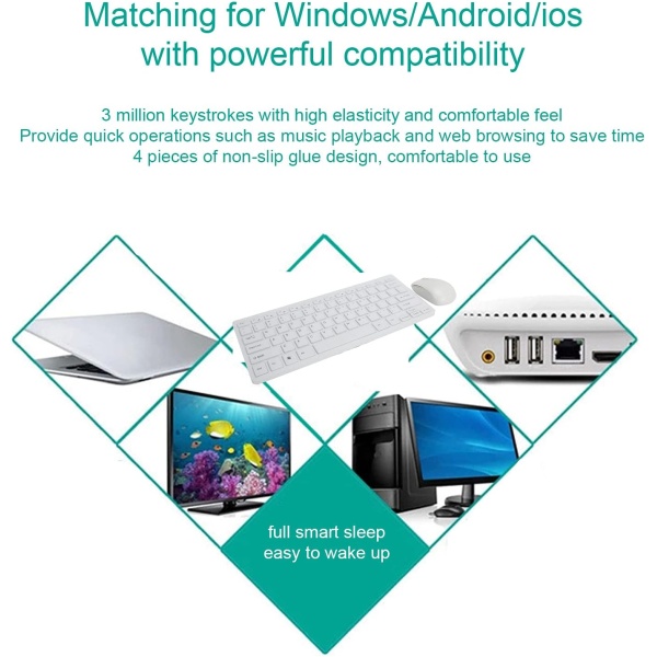 Ratón Inalámbrico, Teclado de Reposo Inteligente Completo Y Juego de Ratón Juego de Ratón Inalámbrico con Teclado Fil para el Hogar Y la Oficina(Blanco)