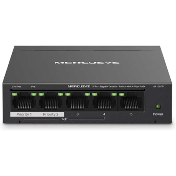 Switch mercusys ms105gp 5 puertos – 10 – 100 – 1000mbps – rj45