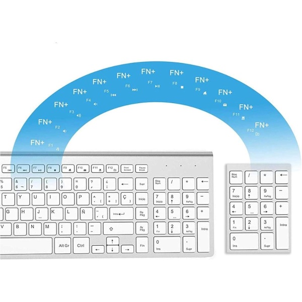 Zhebei combinación de teclado y ratón inalámbrico 2.4GHz conexión estable, teclado silencioso portátil y ratón plateado blanco